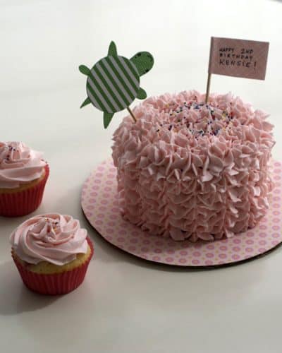 Hi! I’ved Missed You! Pink Ruffle Cake With Turtle Topper