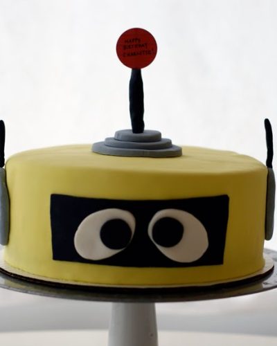 Plex the robot cake from Yo Gabba Gabba! This guy was dark chocolate with vanilla buttercream, covered and decorated in fondant. I really can’t wait to make more of the Yo Gabba Gabba characters in cake form in the future… ‘specially the super hairy green stripey guy! You really learn a lot about modern kid’s […]