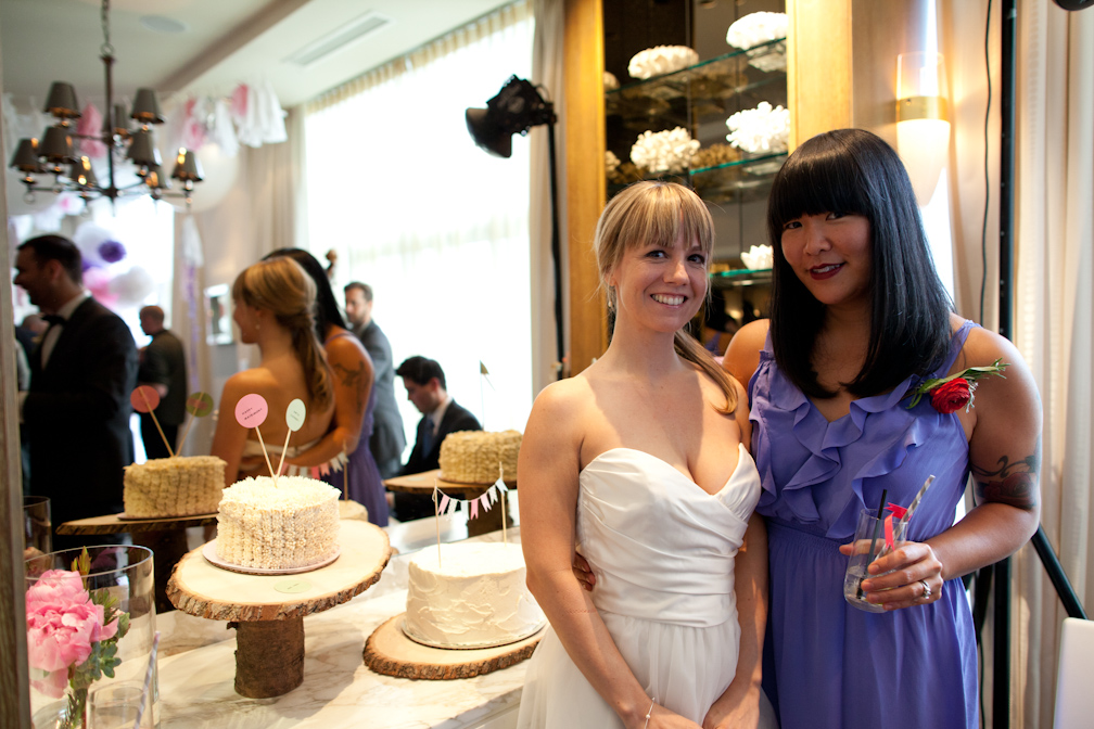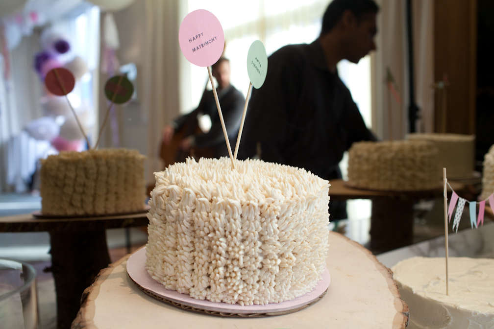 My dear pal Amy got married! And I was her Maid of Honour! Amy has always had a gorgeous sense of style. She is a bright, modern, super fashionable little cutie with a love of finely crafted things. Amy and Stephen got married at the Loden Hotel here in Vancouver – and I made four lovely buttercream cakes, each with their own little personality, for the occasion!