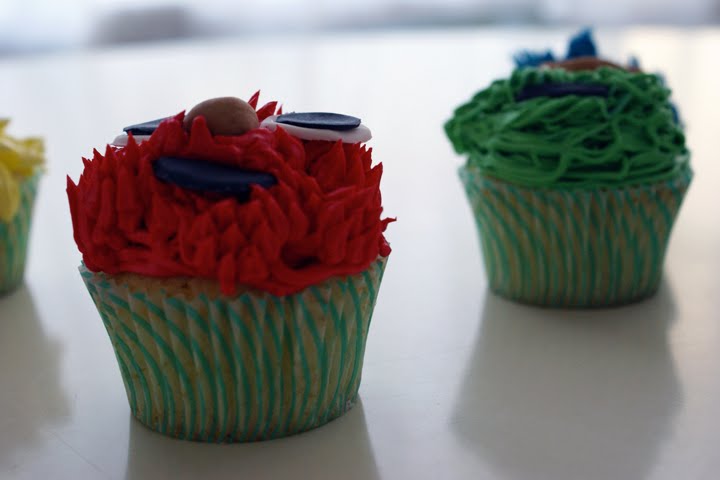 Heehee! I loved how these Coco Cake created nutbars turned out. As I handcut each little fondant eyeball and made the beaks and such for Big Bird and piped all their different types and colours of hairiness, in assembling them, I just couldn’t help but make little conversations up between them all. And of course I was thinking about this hee-larious video of Bert and Ernie doing gangsta rap that someone sent me a while back… go HERE to view! I made these for my wonderful dentist’s niece and nephew who were up visiting from the States.