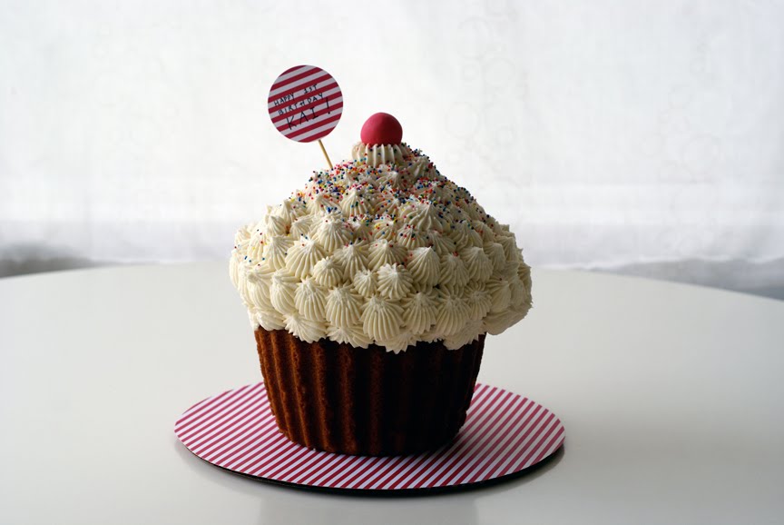I love the idea of the giant cupcake. So pop art, so surreal. Inherently comical!