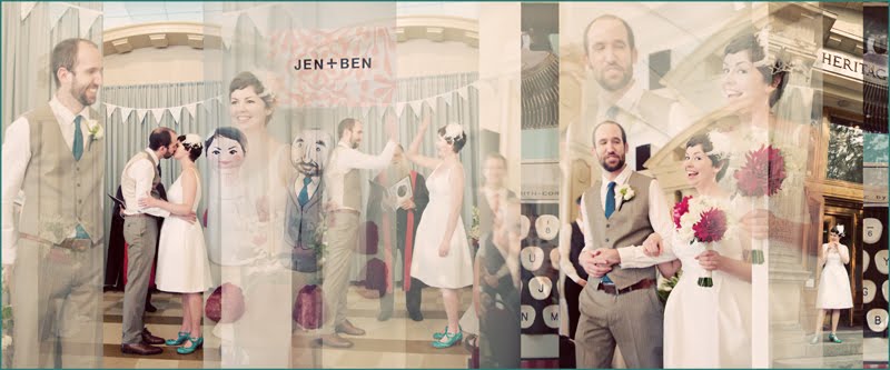 Photos of the bride and groom: Jen’s friend Camille made the collage out of sideline snapshots; bottom pic also taken by a pal at the wedding!