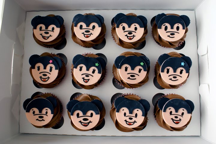 Jacob contacted COCO CAKE with a request for his little cutie Isaac’s 1st birthday party: Mickey Mouse themed cake and matching Mickey and Minnie cupcakes in chocolate and vanilla. I think my Mickey cake turned out pretty cute– kind of Steamboat Willie era Mickey Mouse, vintage-look! I went with red and white stripey liners and a general red and white theme (I was thinking of Mickey’s red party pants).
