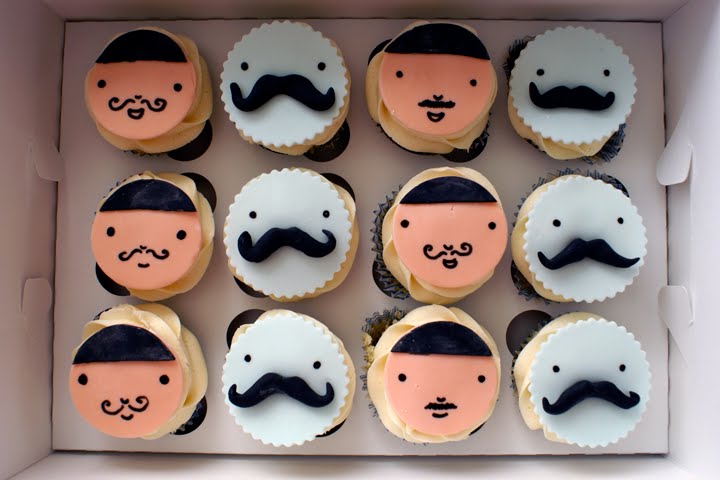Moustachio-themed cupcakes to announce the gender of Kellie’s upcoming baby! :)