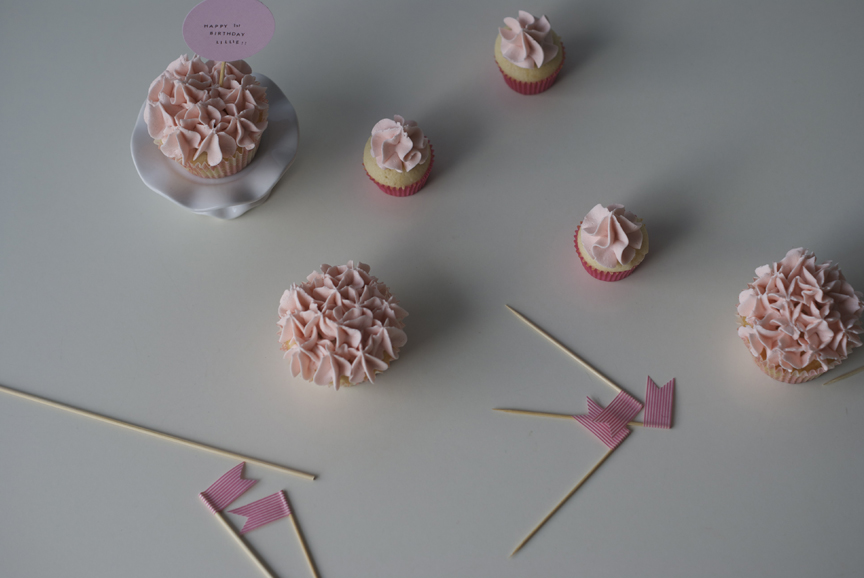 Yani asked me to make some pink ruffly vanilla cupcakes for Lillie’s 1st birthday at Collage Collage. It was a wonderful little party, a giant pink balloon for the birthday baby, drinks and snacks, pompom making (i really wanted to make one!) and plenty of family and friends warming up the place.